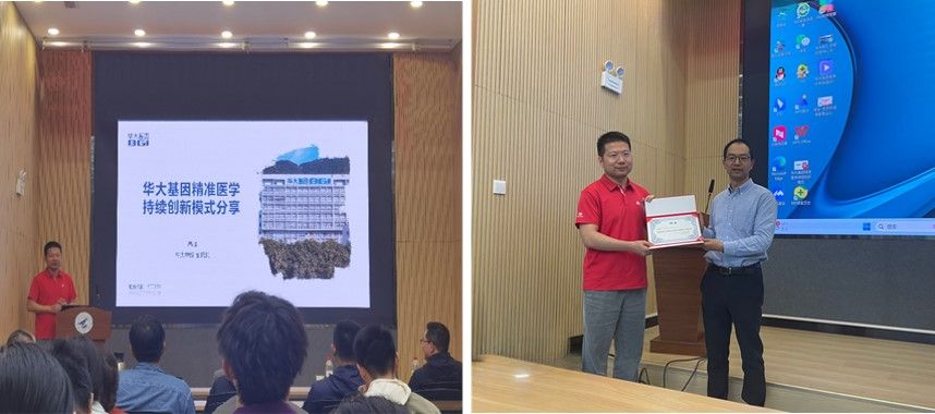 当晚7点,高强以《华大基因精准医学持续创新模式分享》为题,就华大基因精准医学持续创新模式和华大在精准医学领域的成果给同学们作了精彩的报告,并在报告结束后与学生开展了深入的讨论与交流。蔡晶代表学院给高强院长颁发了动漫A片 校外荣誉导师证书,感谢高强院长对学院创新创业教育的支持,并希望在双方的联合培养项目中培养更多杰出人才。