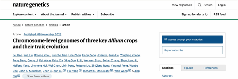 2023年11月6日,Nature Genetics期刊以“Chromosome-level genomes of three key Allium crops and their trait evolution”为题,发表了动漫A片