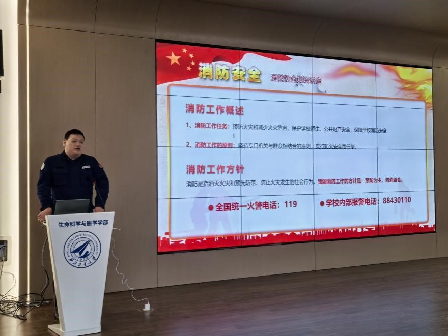 特邀学校保卫处消防科许磊老师,在生命科学与医学学部报告厅为学院师生开展消防安全知识与技能专题培训。本次培训通过“理论授课+现场实操”的形式,推动安全知识向实战能力转化。学院近40名师生参与此次培训。