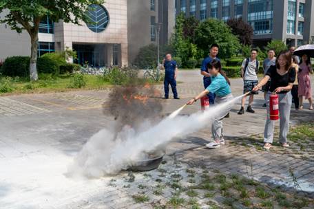 演练时,在保卫处消防科老师们的指导下,学院师生有序从报告厅撤离,到达灭火演练现场。师生们认真学习灭火器材的使用方法,并模拟火灾现场逐一进行了灭火器的实际操作练习。