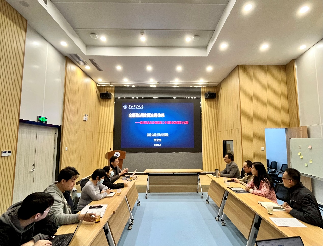 张文生副处长介绍了信息化建设“十四五”规划和我校信息化处在提升学校信息化管理程度,提供决策支撑,解决重复填表,便利师生工作学习生活等方面的工作情况。