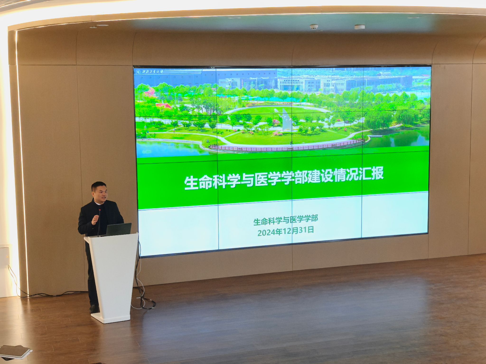 随后,生命科学与医学学部党委书记段利兵从学部现状、相关学科调研情况以及发展建设思路等方面对学部建设情况进行了介绍,表示要通过全体教职工的努力,多措并举将学部打造成为人才培养的主阵地、高层次人才的汇聚地和科技创新的策源地。