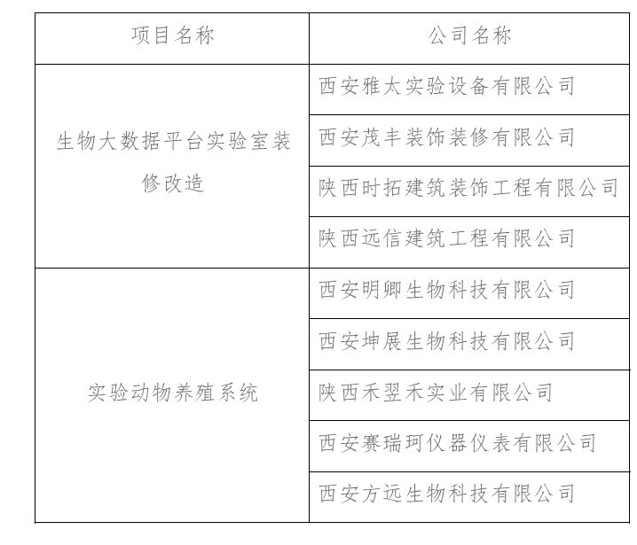 拟对生物大数据平台实验室装修改造和部分科研设备和服务实施公开集中采购。通过对前期报名的项目响应公司进行资格预审,共有9家公司通过审核,现将结果公告如下(排名不分先后):