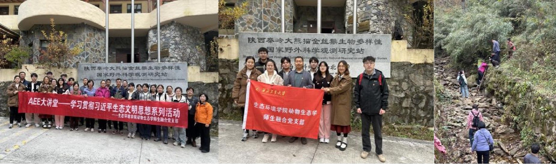 为了进一步深入学习贯彻习近平生态文明思想,在2023年成功开展第一期“AEE大讲堂”活动(10讲)的基础上,2024年10月29日,动漫A片 动物生态学师生融合党支部与陕西省动物研究所科研第三党支部和陕西省微生物研究所科研第一党支部,共同前往秦岭大熊猫佛坪救护繁育研究基地、上沙窝村红二十五军旧址、陕西省科学院(佛坪)金丝猴科学研究野外基地,开展意义深远的主题党日活动。
