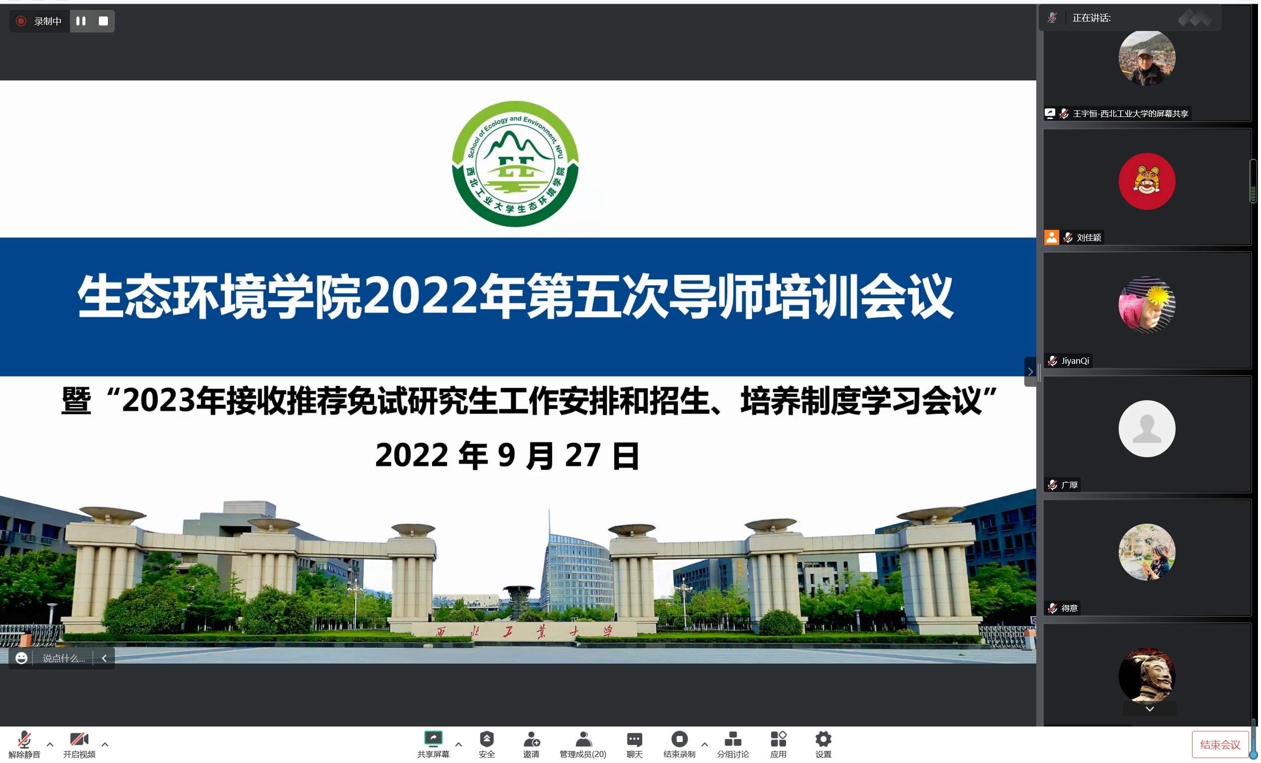 2022年度第五次导师培训会议暨2023年接收推荐免试研究生工作安排和招生、培养制度学习会议。会议由副院长王宇恒主持,学院全体研究生导师线上参会。