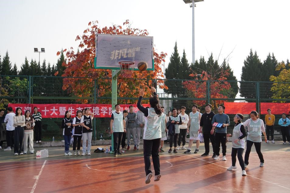 此外为促进学院师生全面参与,本次活动还设置了激动人心的女生趣味投篮环节。学院党总支书记、副院长牟蕾也加入了投篮队伍,和众多老师以及同学们一起参加投篮比赛,随着一个个篮球进框,场上的气氛再次达到高潮。