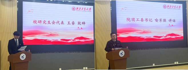 校研究生会代表王睿和院团工委书记喻军强先后致辞,充分肯定了过去一年来院研究生会各项工作取得的成效,对研究生代表大会的顺利召开表示祝贺。