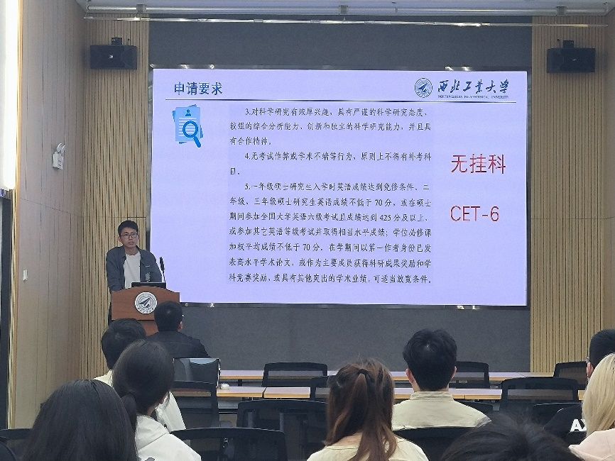 随后,2024届硕士毕业生王春林同学走上讲台,与大家分享了他在升学规划方面的心得与体会。他首先强调了明确升学目标的重要性,鼓励同学们要紧密结合自身兴趣与职业规划,明确自己的升学方向。随后,他详细阐述了如何制定行之有效的学习计划,并强调了持之以恒的重要性。王春林同学的分享,不仅让同学们对升学规划有了更为清晰的认识,也为大家指明了前进的道路。